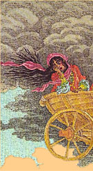 Одједном, појави се месец иза облака и Циганка виде да коњи по земљи не јуре, већ по небу лете, а земља је далеко под њима остала.