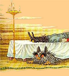 - Треба сачекати јутро,-рече отац.-До јутра ће се он приказивати, а кад запевају трећи петлови, нестаће. Тада ћемо моћи наћи његово тело.